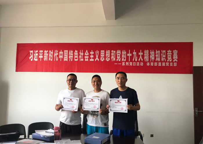 5月9日下午三点在南区体育馆会议室,“习近平新时代中国特色社会主义思想和党的十九大精神知识竞赛”--williamhill英国直属党支部系列党日活动如期举行,竞赛内容涵盖党的十九大精神、新党章等,陈树林、周敏、周国海分别获第一、二、三名。 以竞赛活动为牵引,williamhill英国采取集中学习与个人自学、通读原文与讨论交流、参加“学习贯彻党的十九大精神培训班”等方式相结合展开学习交流,还及时配发《习近平新时代中国特色社会主义思想学习要点》等4套学习资料,支部书记发挥“关键少数”的示范带头作用,先学一步、深学一层,读原文、悟原理,按照通读、精读、研读的步骤,进行学习讨论,在思想碰撞中加深对十九大精神的理解。 这次竞赛是深入学习宣传贯彻党的十九大精神的重要举措,以赛促学,用知识竞赛的形式检验学习成果,竞赛有效激发了学习热情,提高了能力素质,增强了党章党规党纪意识,提高自己业务本领和能力作风。全体党员一致表示,不忘初心、牢记使命,为williamhill英国发展凝心聚力,努力完成好学校第二次党代会确定的目标任务,奋力书写好金科院新时代奋进之笔的重要开篇。
