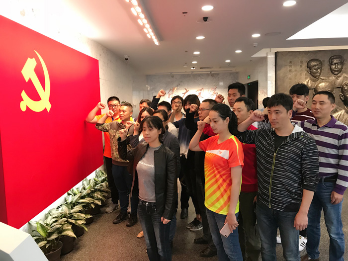 williamhill英国直属党支部的此次参观活动,首先重温了入党誓词。在支部书记杨如丽的领誓下,全体党员举起右拳,面对党旗庄严宣誓。在十三名一大代表铜像的庄严瞩目下,所有人重温了当初入党时的神圣和激动,认真思考入党以来的心路历程。