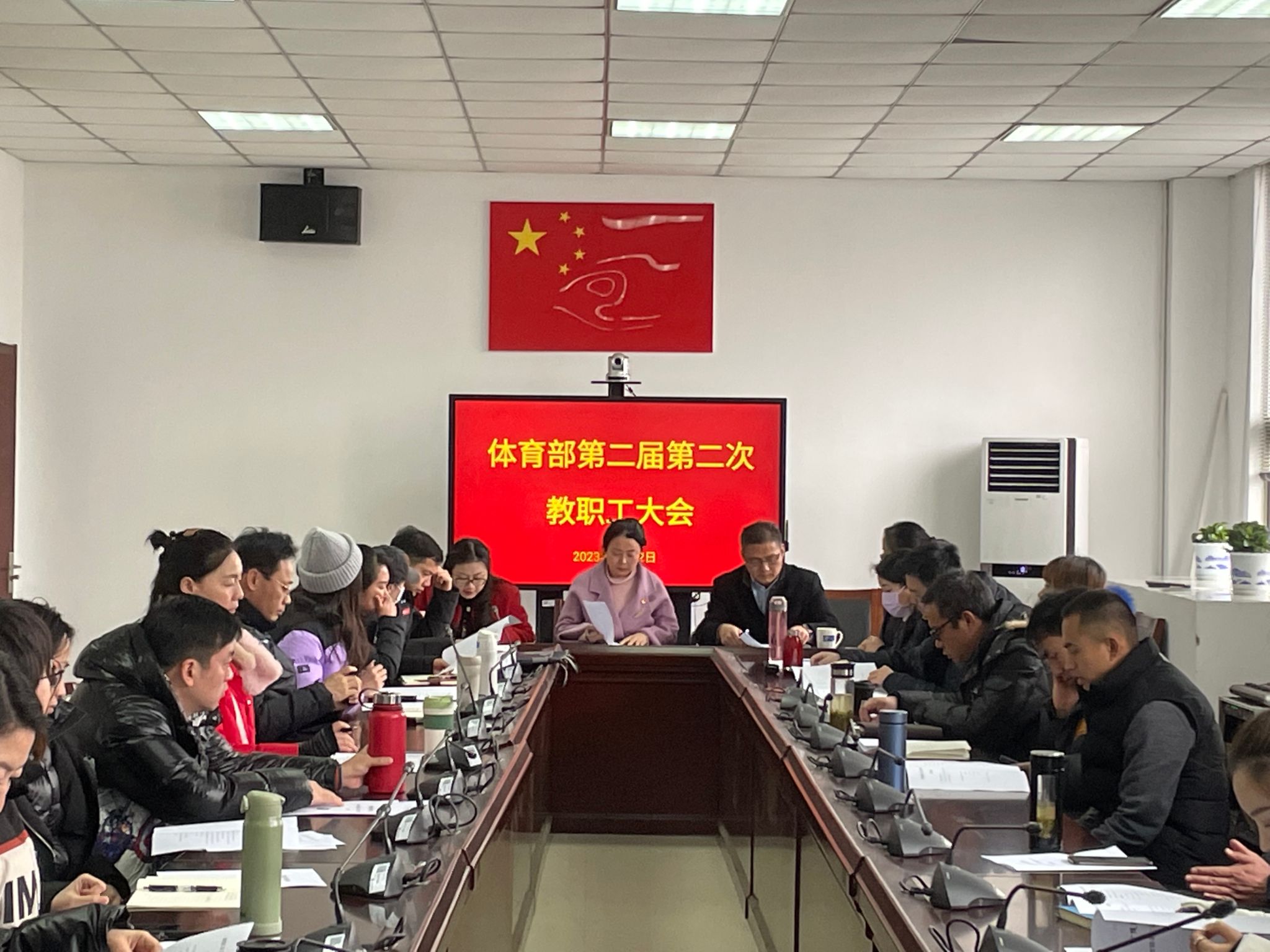 2023年2月22日下午,williamhill英国在体育馆会议室召开第二届二次教职工大会,williamhill英国党政领导及全体教职工参加了大会。