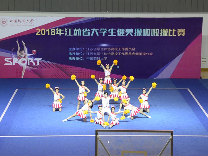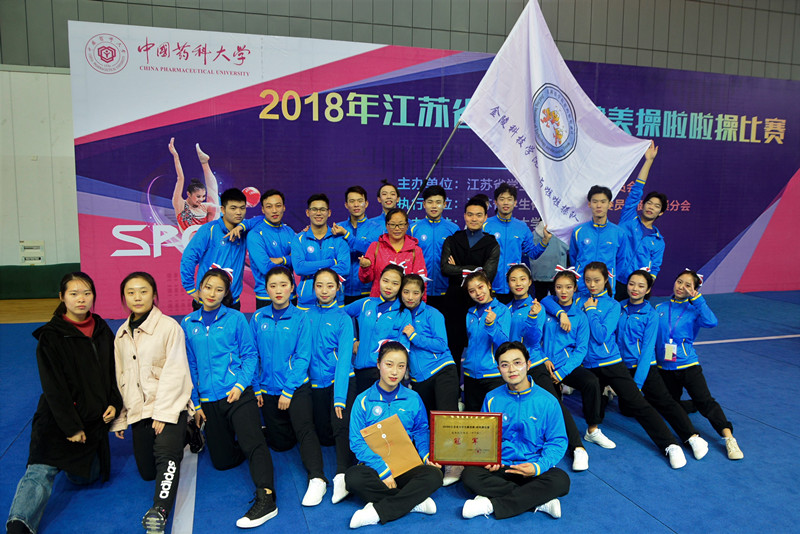 11月16日至18日,2018年江苏省大学生健美操啦啦操比赛在中国药科大学隆重举行。我校啦啦操队派出22名运动员,参加了花球自选及混合技巧规定两个项目比赛,分别取得了花球自选亚军和混合技巧冠军的优异成绩,为学校争得了荣誉!