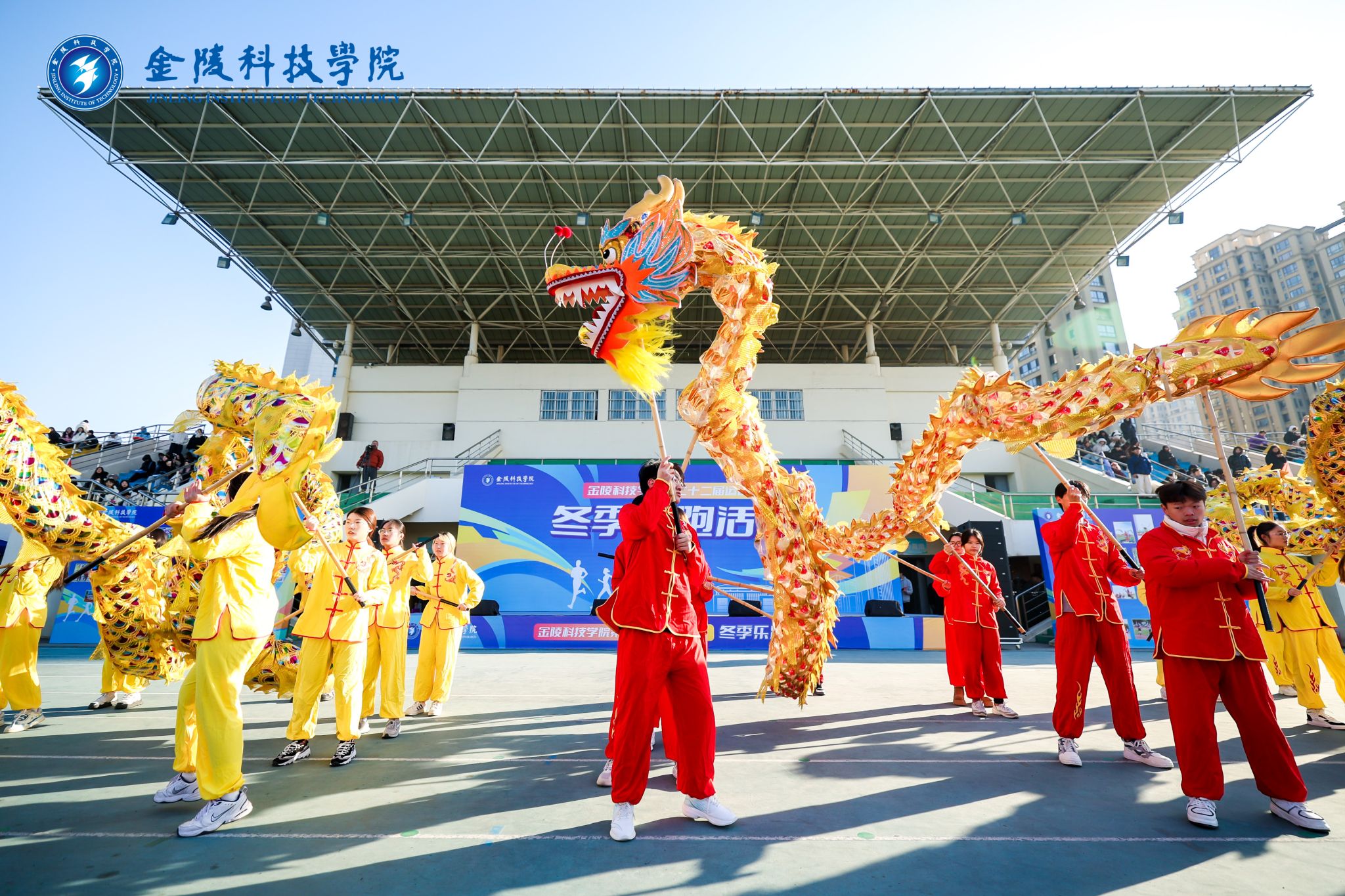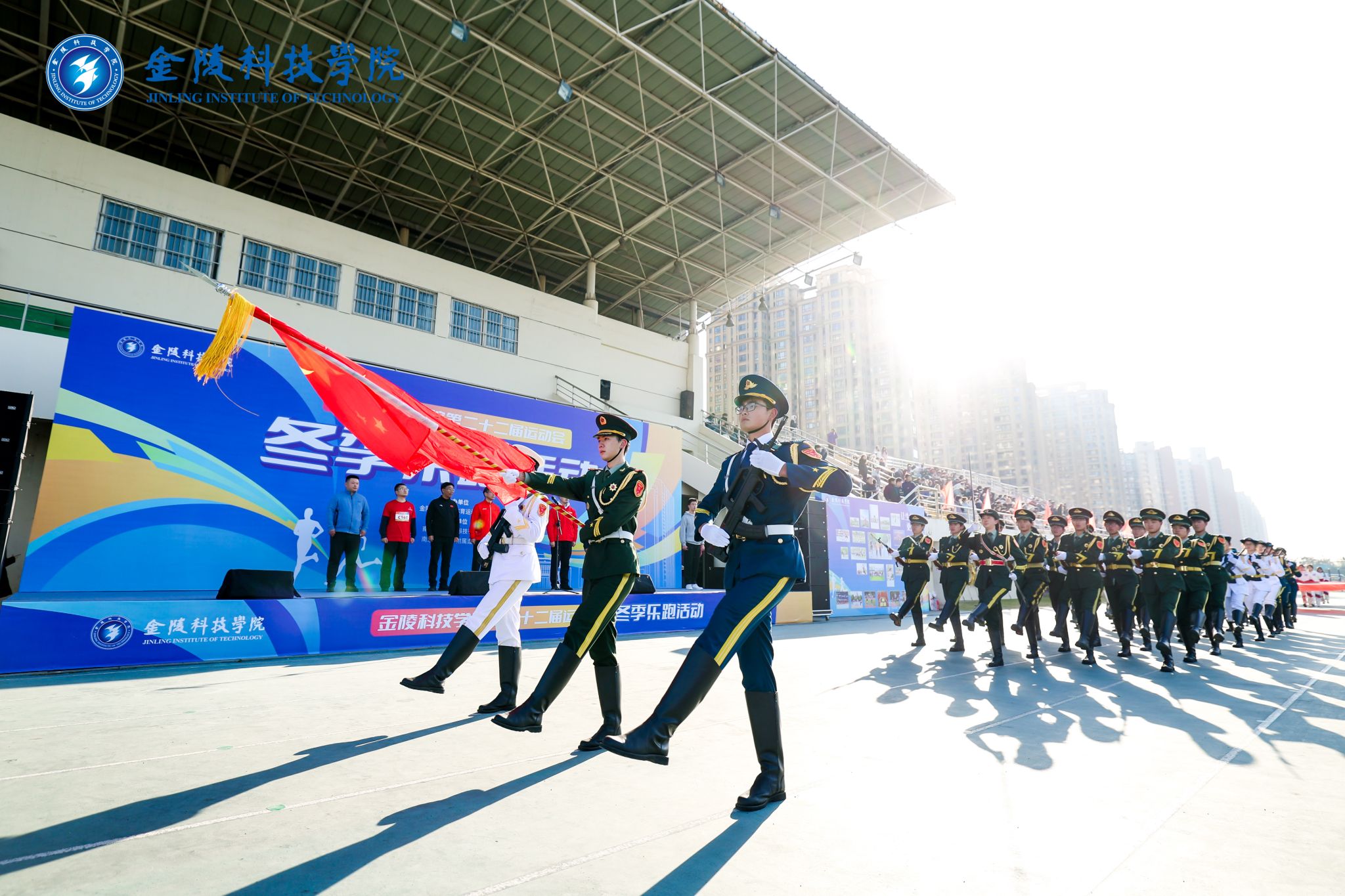 活动在商学院鼓队的激情表演中拉开了序幕。鼓点铿锵,气势恢宏,金科学子的青春力量展示得淋漓尽致,激昂的鼓点声激发了运动员们的昂扬斗志。力量、技巧、美感……校啦啦操队活力四射,表现亮眼,仿佛用青春的火焰点燃了整个赛场,赢得了观众们的阵阵喝彩与掌声。舞龙队的矫健身影出现在操场上,动物科学与食品工程学院的学子们精心编排、努力训练,这项中华民族传统体育项目得以在我校传承和发扬。国旗班迈着铿锵有力的步伐走过,身姿挺拔、目光坚毅,团结、向上、奋进,一直都是金科人的态度。