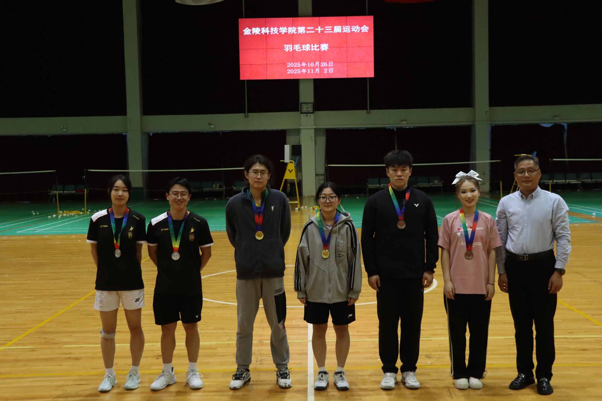 William威廉英国第二十三届运动会羽毛球比赛于2025年10月26、11月2日,在江宁校区体育馆隆重举行,比赛项目分为单项赛(男子单打、女子单打、混合双打)和混合团体赛,共有17支学院代表队253名运动员参加,部分留学生也参与到比赛之中。