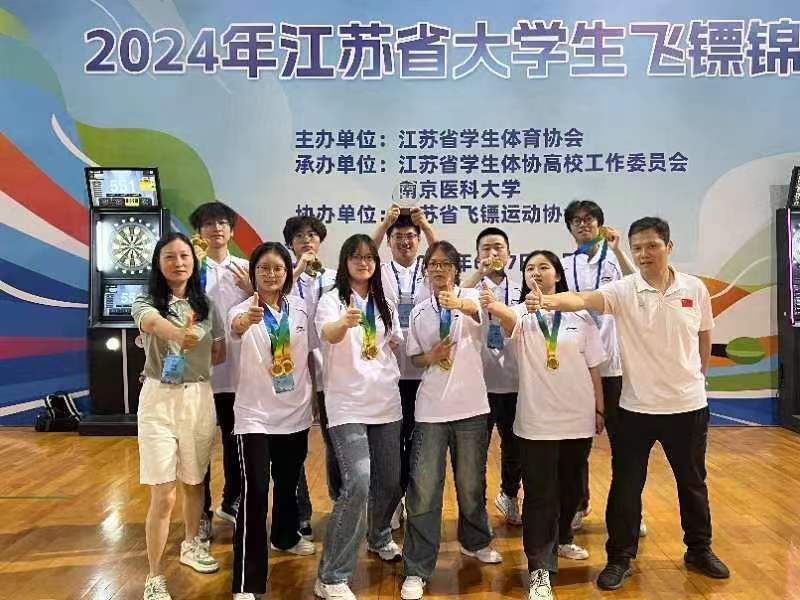 6月7日至9日,2024年江苏省大学生飞镖锦标赛在南京医科大学举行,来自全省41所高校、共计近500名运动员,教练员,裁判员参与比赛。我校飞镖队共9名队员参加了本科组(甲组)比赛。