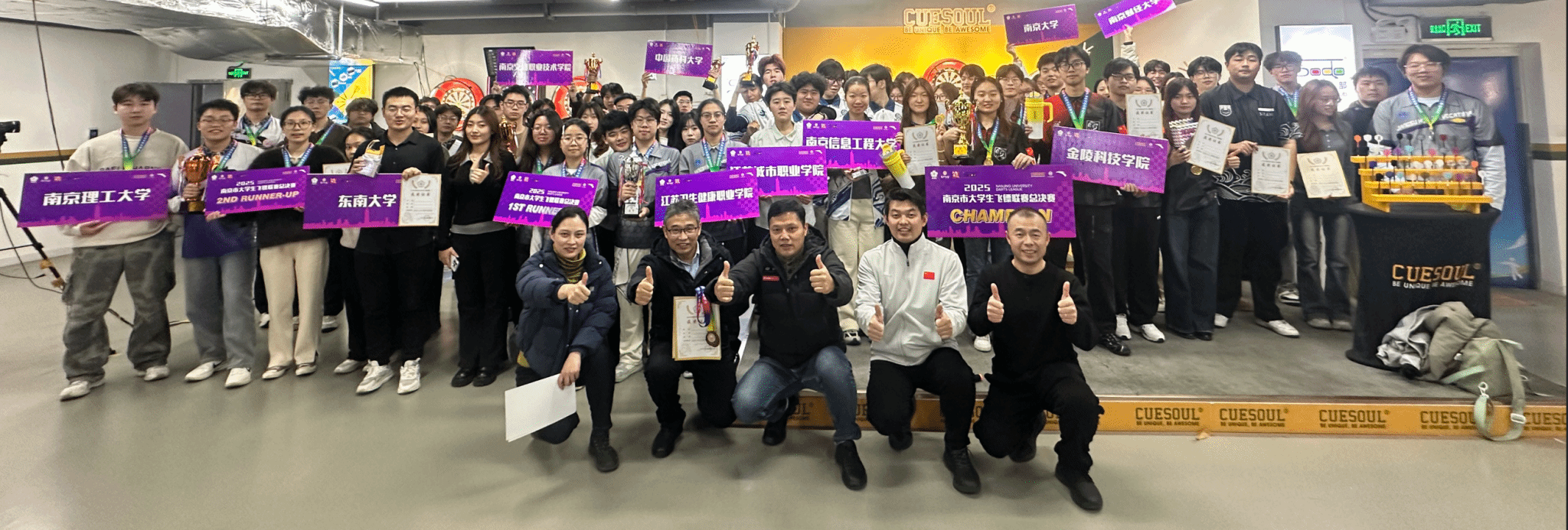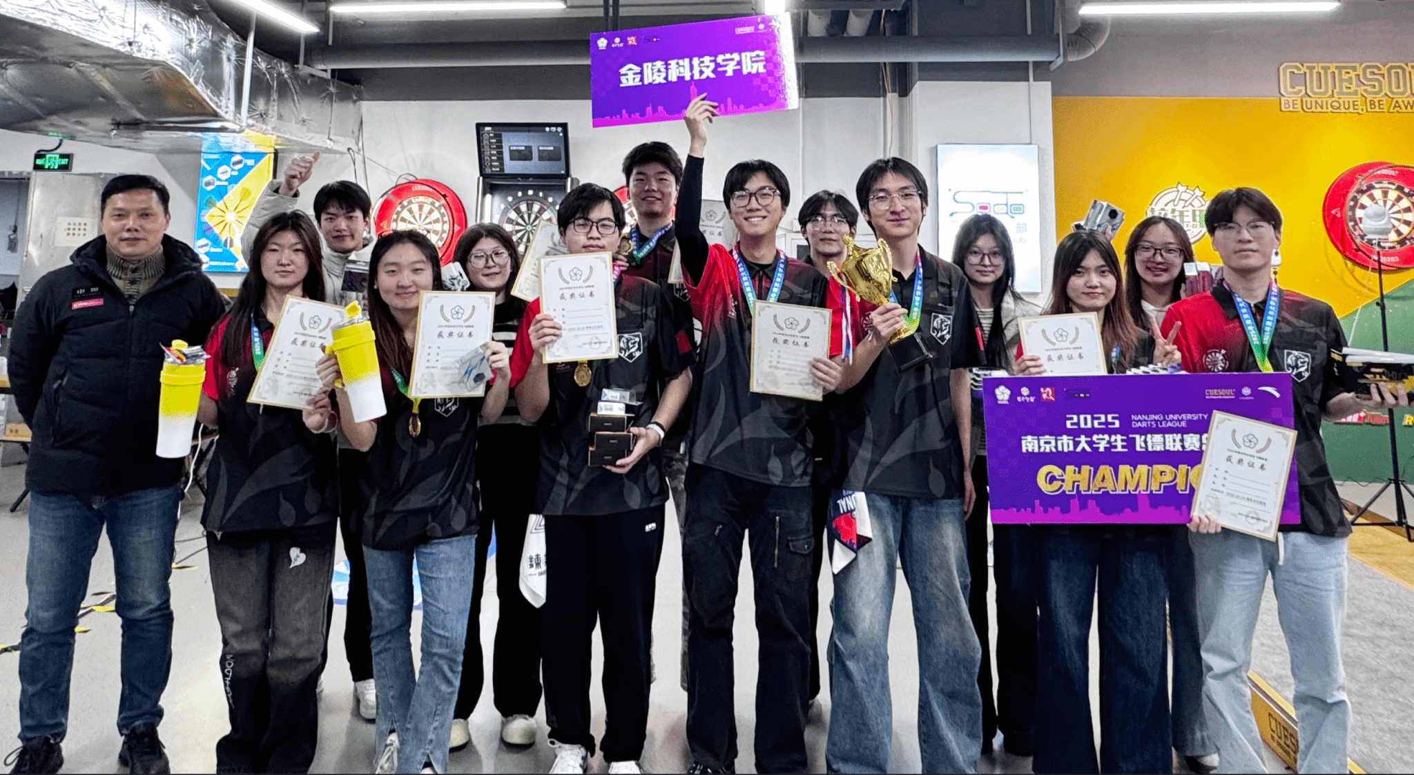 2025年5月至12月,南京市大学生飞镖联赛在大行宫见举行。我校飞镖队凭借精湛的技艺、稳定的发挥和出色的团队协作,一举夺得本届联赛团体赛总冠军,为学校赢得了荣誉。