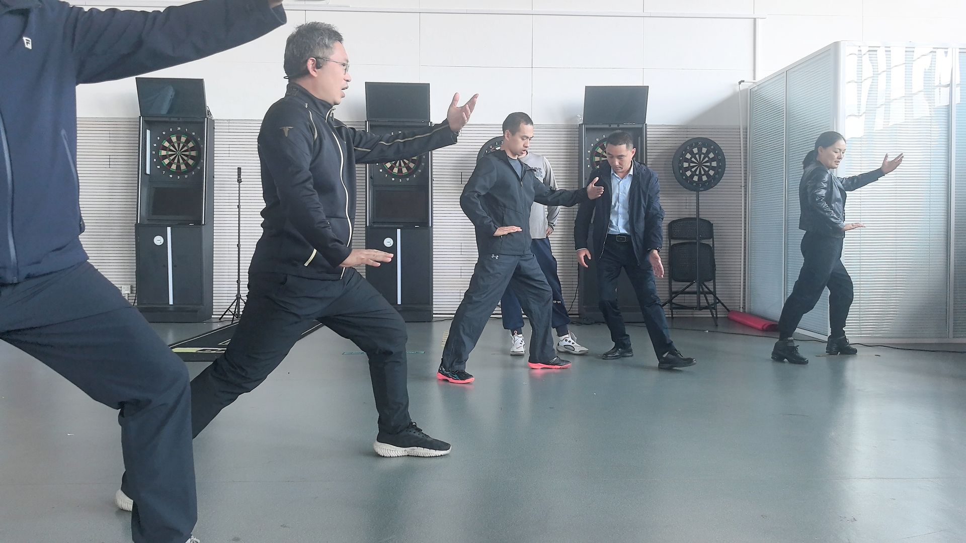 活动中,陈老师着重从动作步骤、动作规格、动作方向三个方面对“野马分鬃”进行了细致的阐述。他不仅展示了正确的动作要领,还强调了动作的规范性和准确性,确保每一位参与者都能准确把握这一招式的精髓。