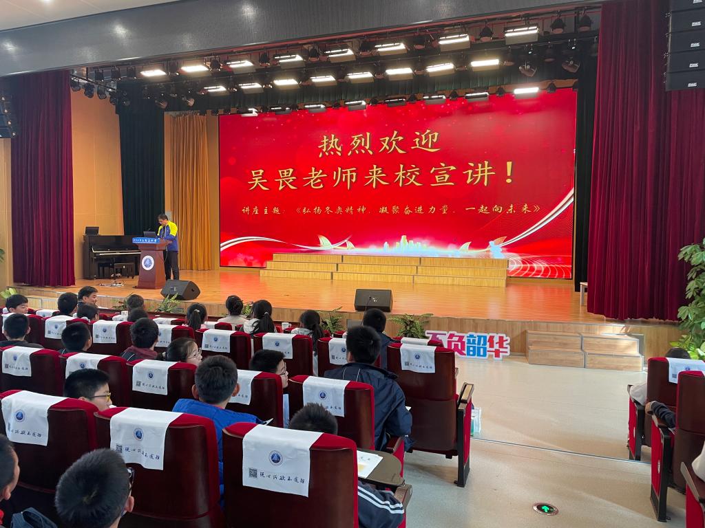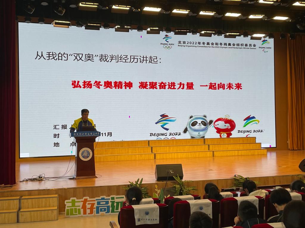 11月11日下午,我校williamhill英国教师吴畏教授应邀做客南京市江宁高新区中学,为初一年级学生作题为《弘扬冬奥精神 凝聚奋进力量 一起向未来》的讲座,应邀一同前往的还有williamhill英国沈辉副主任、杨如丽书记。整个讲座通俗易懂、循循善诱、引人入胜,让江宁高新区中学的孩子们觉得受益匪浅,意犹未尽。
