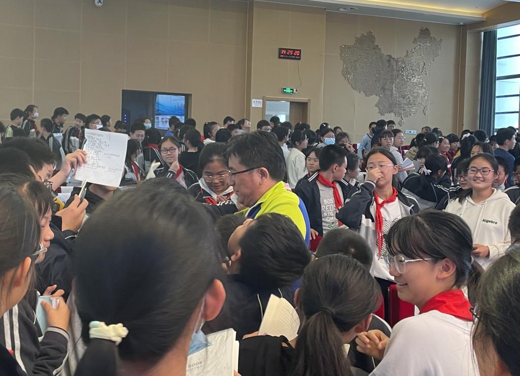 吴畏教授从“追星逐梦,了解高山滑雪”说起,帮助孩子们更容易了解何为冬奥高山滑雪项目;紧接着以“走进赛场,讲述冬奥故事”为题,向大家介绍了自己受邀担任2008年北京奥运会及2022年冬奥会、冬残奥会国家技术官员的双奥裁判经历,给孩子们讲述了比赛中裁判员们需要克服种种困难与艰辛,一路披荆斩棘才能顺利完成执裁任务;最后以“使命担当,践行体育精神”为结尾,希望孩子们在平时的生活学习中也能够坚持冬奥精神,遇到困难时继续向前,胸怀大局,攻坚克难。结束前,吴畏教授和孩子们进行了互动问答,给孩子们发放纪念品,引得全场气氛热烈。讲座结束后孩子们紧紧围住吴畏教授,久久不愿离去。