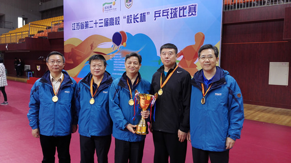10月29日-10月30日,由江苏省教育厅主办的江苏省第二十三届高校“校长杯”乒乓球比赛在南京医科大学举行。我校聂影校长带队,校领导冯年华、葛军、丁鹏、宋丁全代表学校参加了本届比赛。在由52支代表队组成的甲组(本科组)比赛中,我校代表队团结拼搏,最终获得了江苏省第二十三届高校“校长杯”乒乓球比赛甲组(本科组)第六名的好成绩。
