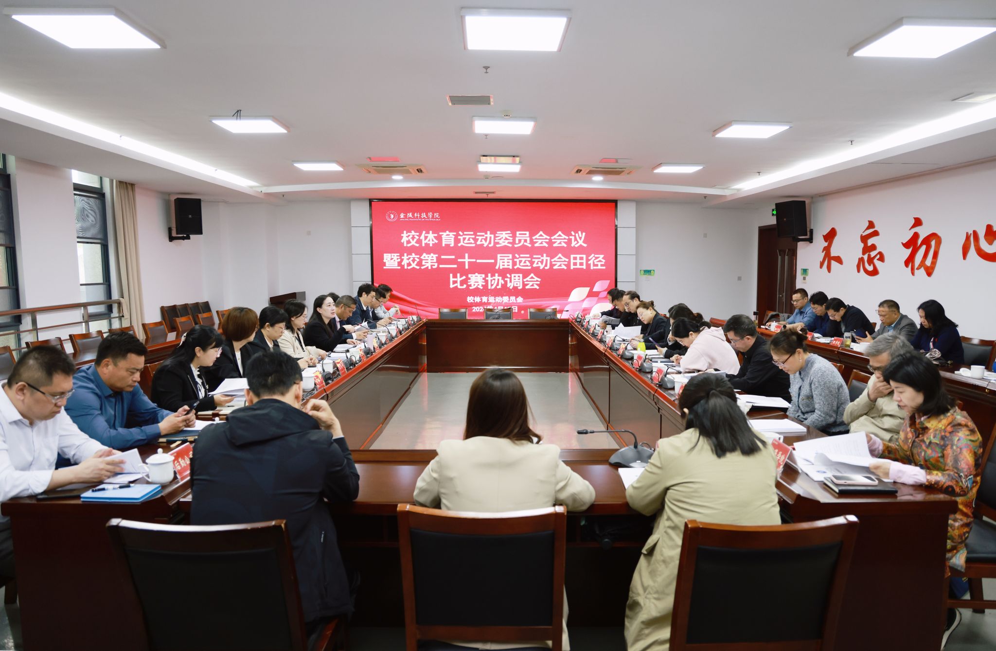 沈辉副主任详细介绍了上一年度学校体育工作开展情况,并对田径运动会各部门的分工作了安排。袁桂才老师对田径运动会的总体情况和注意事项作了汇报,并组织各二级学院(部)进行了抽签,确定了出场等顺序。工会陆国晓主席就相关教工比赛进行了部署,她表示,此次赛事教职工参与度非常高,这不仅是一场比赛,更是一次促进教职工之间沟通与交流,增进友谊的机会。