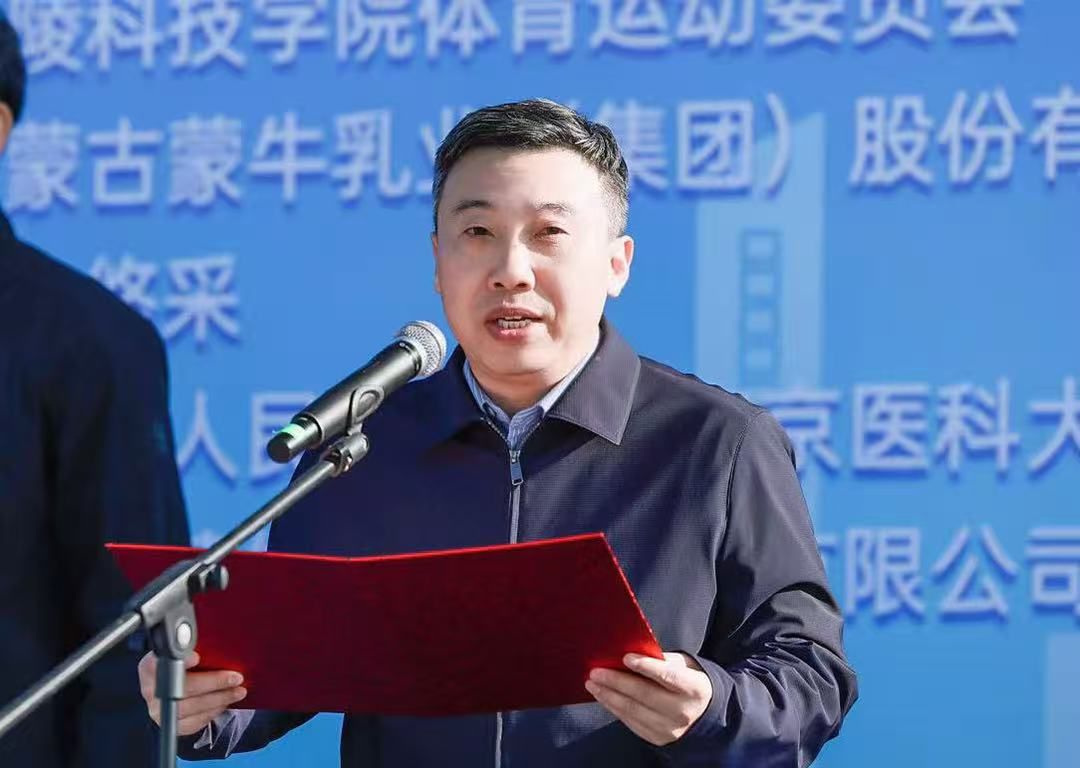 季赛在致辞中指出,学校一年来各项重点工作扎实推进,成绩斐然,获批江苏省一流应用型本科高校建设单位、博士学位授予立项建设单位,连续四年斩获南京市高质量发展综合考核第一等次,硕果累累的背后,是金科人永不懈怠的拼搏精神。他强调,体育是“五育并举”的核心环节,是落实立德树人根本任务的重要举措,学校构建的“以体育心、以体育智、以体育人”育人体系成效显著,95%的学生体质健康测试合格率、293人次省级以上赛事奖项,都是金科体育精神的生动注脚。最后,他引用习近平总书记“体育强则中国强,国运兴则体育兴”的重要论述,呼吁全体金科人将运动融入日常,以昂扬姿态奔赴新征程!