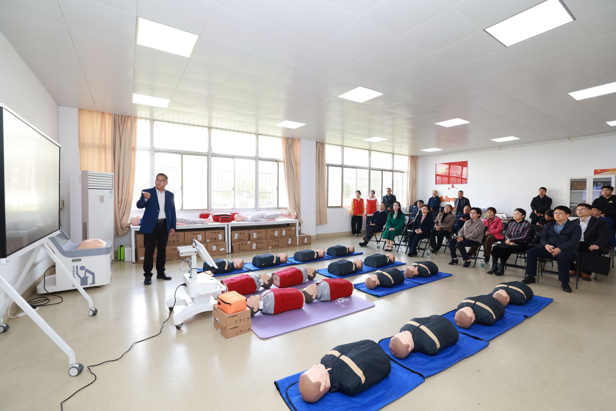 副校长顾晓燕、江宁区红十字会相关领导、williamhill英国相关负责人以及我校学生应急救护志愿者代表全程参与了接待工作。